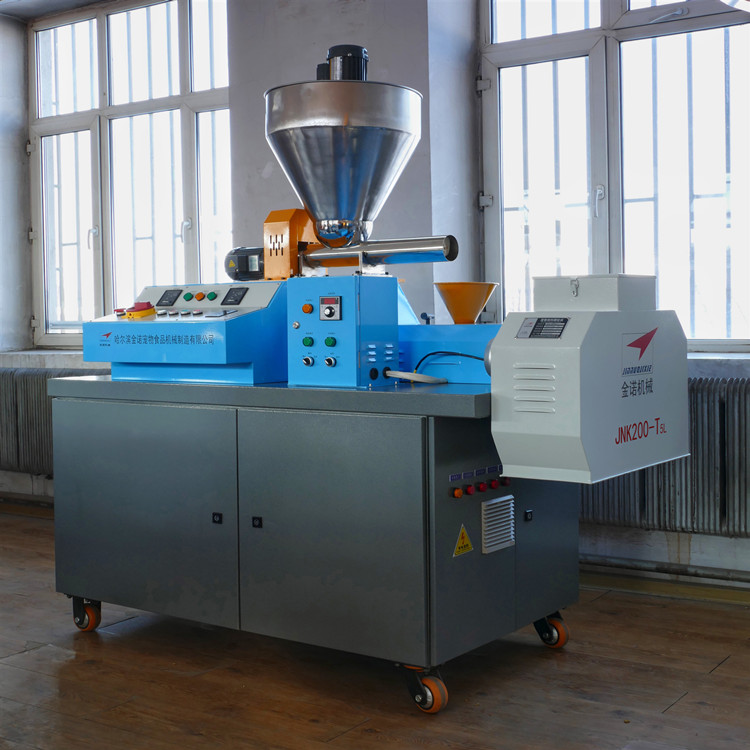 JNK500-T8寵物食品設備特點:狗糧制造機器切刀采用直角切刀技術,安裝調試更方便,狗糧機的主軸和切刀小軸均可隨時注油,延長狗糧設備的軸承使用。匹配恒溫控制機組,保證狗糧顆粒機在設定的溫度下工作,顆粒成型穩定,美觀。JNK500-T8狗糧設備每小時加工狗糧顆粒500公斤。